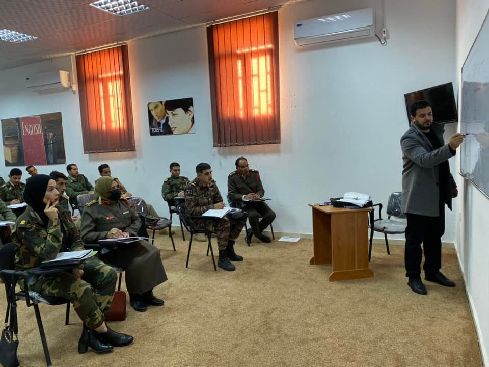 افاد عميد دكتور مهندس عبدالله الراشدي مدير مركز اللغات بالأكاديمية انه وفي اطار الإستراتيجية التي تتبناها الأكاديمية للرفع من كفاءة منتسبي القوات المسلحة وتنفيذًا للخطة التدريبية للعام 2023/2022 بدأ ت بمقر الاكاديمية دورة اللغة الانجليزية في المستوى الاول والثاني ، حيث اوضح مدير مركز اللغات ان البرنامج يستهدف دفعة جديدة من ضباط القوات المسلحة العربية الليبية ،